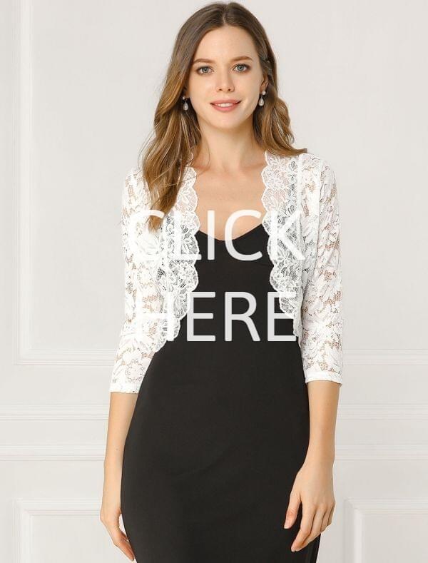 Constructed in a classic shrug silhouette, this charming piece benefits from an open neck and elegant three-quarter flute sleeves with scallop edging. Perfect match for wedding party or everyday skirt for a weekend casual look!