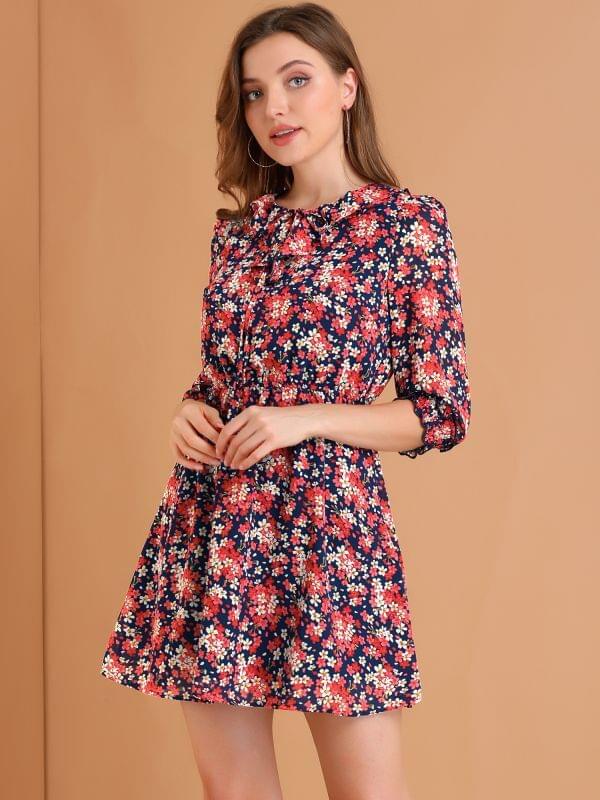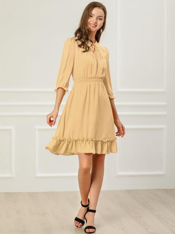 #Toptrending Ruffle Hem 3/4 Sleeve A-Line Short Chiffon Dress